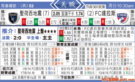 > 10:30 美職聯 聖荷西地震:FC達拉斯