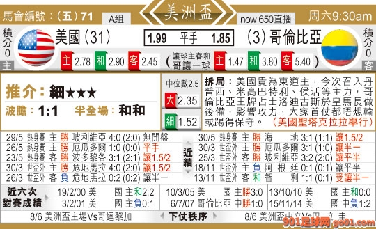 09:30 美洲盃 美國:哥倫比亞