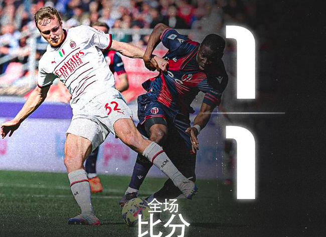 4月15日21点,意甲第30轮,AC米兰1-1战平博洛尼亚。