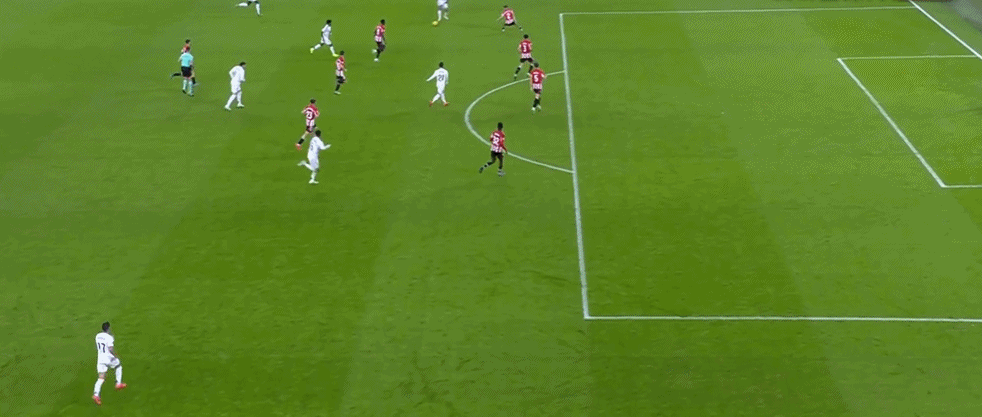 皇家马德里首发:1-库尔图瓦、17-巴斯克斯(88‘15-居勒尔)、35-劳尔-阿森西奥、22-吕迪格、20-弗兰-加西亚(71’23-费兰-门迪)、14-琼阿梅尼(71‘10-莫德里奇)、8-巴尔韦德、19-塞巴略斯(58’21-迪亚斯)、5-贝林厄姆、11-罗德里戈(88‘16-恩德里克)、9-姆巴佩